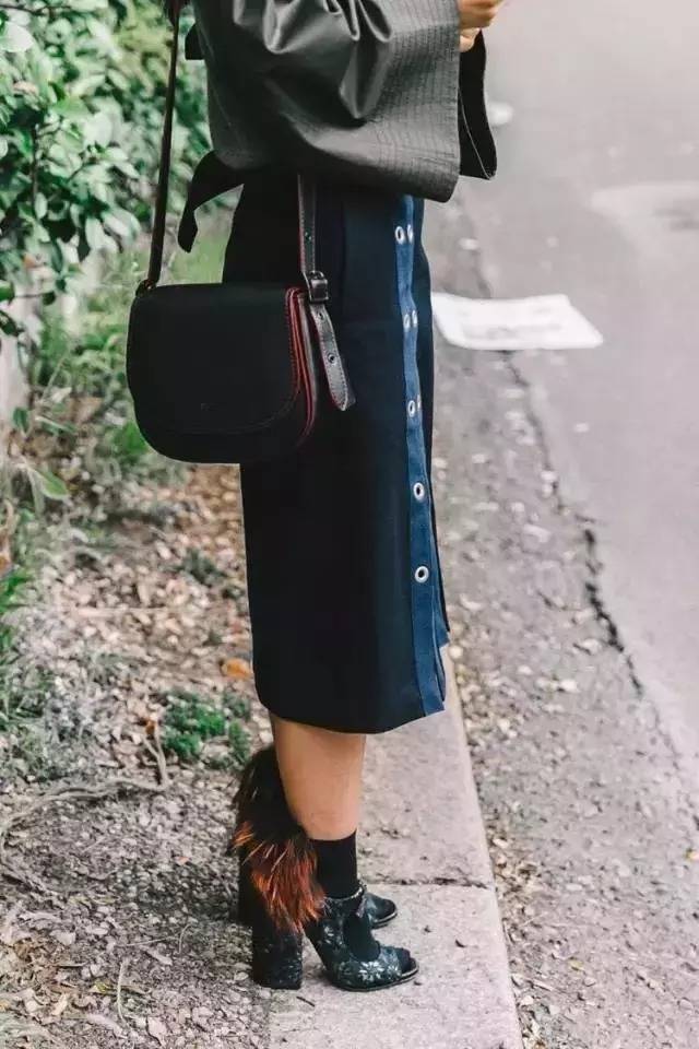 金属色比较亮眼,在视觉上很容易膨胀,胖一点的妹子可以选择黑色,而矮一些的妹子呢,可以选择短一点的裙款。