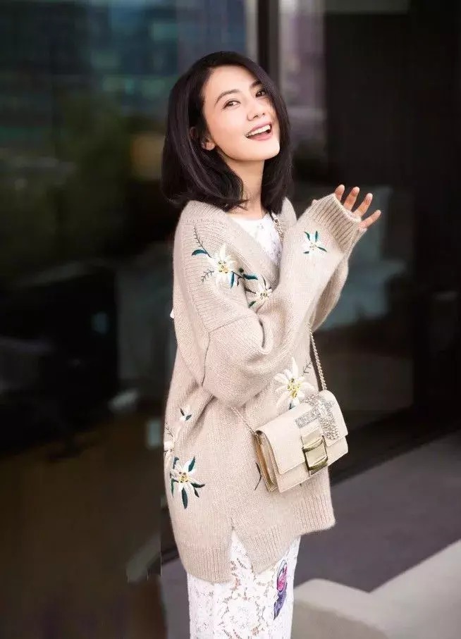 高圆圆的Bally花朵毛衣搭配蕾丝半裙,加上她淡淡的妆容,非常符合她温柔的气质。